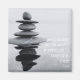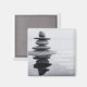Der quadratische Magnet zeigt Cicero Dankbarkeit Zitat mit Schwarz-Weiß-Foto von ausgeglichenen Steinen, die in Wasser reflektieren. Vollständiges Zitat: "Dankbarkeit ist nicht nur die bestste Tugend, sondern auch die Eltern aller anderen."