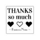 Diese dankbare Gummi-Briefmarke-Design beinhaltet die Nachricht "DANKS so viel" und einen eigenen Organisationsnamen. Es kann von einem Unternehmen, einer Organisation, einem Unternehmen oder einem beruflichen genutzt werden, um den Kunden oder Kunden, die einen Kauf getätigt haben, zu danken.