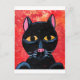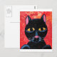 Eine niedliche schwarze Katze mit feurigen roten und orangen Hintergrund.