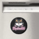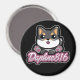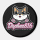 Ein schwarzer Magnet, mit dem Logo von Daphne 816.