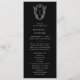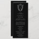 Dieses elegante, minimalistische, dunkelschwarze Hochzeitsprogramm der Daphne Collection eignet sich perfekt für eine traditionelle Hochzeit. Das schlichte und dennoch raffinierte Design zeichnet sich durch ein elegantes und zeitloses Vintages Wappen-Monogramm aus, das mit Blumen und Grünpflanzen die Initialen des Paares umgibt. Geben Sie die Namen des Paares, das Datum und den Ort der Hochzeit, Dankeschön-Nachricht, Dienstorden, Hochzeitsfeier und ein optionales "in Loving Memory"-Denkmal ein.