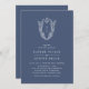 Dieser QR Code dunkelblau minimale einfache Hochzeitseinladung aus der Daphne Collection ist perfekt für eine traditionelle Hochzeit. Das schlichte und dennoch klassische Design besticht durch ein elegantes und zeitloses Monogramm aus königlichem Wappen mit Blumenbeeten und Grünpflanzen, die die Initialen des Ehepaares umgeben. Rett Papier durch einen QR-Code für den Gast, um Details, UAWG oder beides anzuzeigen.