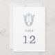 Diese blauen und weißen botanischen Tischnummern aus der Daphne Collection sind perfekt für eine Hochzeit. Das schlichte und dennoch klassische Design besticht durch ein elegantes und zeitloses Monogramm aus königlichem Wappen mit Blumenbeeten und Grünpflanzen, die die Initialen des Ehepaares umgeben. Die Karte druckt auf der Vorder- und Rückseite (beidseitig). Fügen Sie jede Tischnummer, die Sie benötigen, einzeln in Ihren Warenkorb.