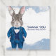 Stilvoll und niedlich, ist dieses Dapper Bunny in einem blauen Schlips und Anzug gepaart mit weich blauen Wasserfarben und silbernen Konfetti-Akzenten der perfekte Weg, um eine Danksagung an die Babydusche Ihrer Mutter oder den Geburtstag Ihres kleinen Jungen zu geben. Das Design enthält alle anpassbaren Texte, einschließlich des Textes auf der Rückseite.