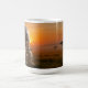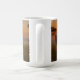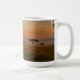 A large white coffee mug featuring a humorous and detailed image of a handsome elephant in a tweed suit seated regally in a luxurious armchair at sunset.