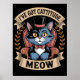 Diese hübsche und humorvolle Grafik besticht durch eine raffinierte, in Blau und Schwarz gehaltene Cartoon-Katze, die sich regelmäßig in einem roten, üppig grünen Sessel niedergelassen hat. Die Katze mit durchstechenden gelben Augen und inhaltlichem Ausdruck ist mit einem stilvollen schwarzen Top-Hut und einer dapper roten Bogen-Krawatte geschmückt. Oben verkündet ein Banner stolz: "Ich habe KATTITUDE GOT", während ein anderes Banner darunter einfach Staaten "MEOW" trägt. Laurel Kränze umrahmen die Szene, alles Set vor einem soliden schwarzen Hintergrund. Digitaler Download für Privatpersonen
