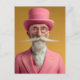 Ein exzentrischer Gentleman, gekleidet in einem auffallend rosa Anzug, passend zum Oberhut und einer runden Brille. Sein ikonischer, lang weißer Schnurrbart und sein raffiniertes Verlangen machen dieses Portrait zu einer kühnen Mischung aus Eleganz und Laune, perfekt für Kunst- und Modeliebhaber.