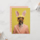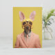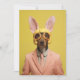 Eine stilvolle Dackel in einem pastellrosa Anzug mit gestreiften Krawatte und einem hellgelben Helm mit hellem Hasen, der Charme und Lustigkeit verströmt. Eine perfekte Mischung aus Eleganz und Spaß für eine festliche Osterfeier.