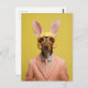 Eine stilvolle Dackel in einem pastellrosa Anzug mit gestreiften Krawatte und einem hellgelben Helm mit hellem Hasen, der Charme und Lustigkeit verströmt. Eine perfekte Mischung aus Eleganz und Spaß für eine festliche Osterfeier.