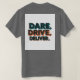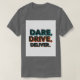 Im Design des T - Shirt steht die Phrase "Dare, Drive, Deliver" in großen, fetten Buchstaben auf der Vorderseite. Die Buchstaben haben eine bedrückte Vintage Ästhetik und verleihen dem Design einen robusten und edgy Look. Der Satz ist dunkel auf einem hellen Shirt gedruckt, sodass er leicht lesbar ist. Das Design ist einfach und auffällig, und es wird bestimmt eine Aussage treffen.