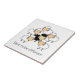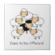 Hübsche schwarze Schafziegel. Eine Gruppe weißer Schafe mit rosa Gesichtern und grauen Ohren umgibt ein wolliges schwarzes Schaf, auch mit einem rosa Gesicht und grauen Ohren. Unten ist eine Beschriftung "wagen Sie es, anders zu sein" in schwarzer Schrift.