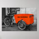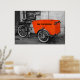 Ungewöhnliches Fahrrad mit einer Nachricht: Wage anders zu sein. (Sie können die Nachricht ändern). Orangefarbene Touch in Schwarz-Weiß-Dekoration.