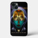 Daria Cyborg Queen ist meine erste humanoide Fraktal-Frau, die ein Portrait aussieht. Das Portrait hat ein Retro-Sci-Fi-Buchcover oder ein Filmplakat mit der Königin in der Mitte, einen Titel über ihr und eine Unterschrift unter ihr. Darias Gesicht besteht aus einem kupfer-metallischen Schädel und einer Bio unteren blauen Oberfläche, die eine mechanisch aussehende Nase, cybernetische Augen und den Schädel-Schließmechanismus umfasst. An der Spitze ihres Kopfes kann man durch den transparenten Teil ihrer elektrischen Kopfaktivität sehen, der mit ihrem fortgeschrittenen cybernetischen Gehirn zusammenfällt. An den Seiten ihres Gesichts und am Hinterkopf ist ein teilweise metallisches Kleidungsstück, das ihr das Aussehen eines Herrschers verleiht; mit einer sternbeleuchteten Halskette als Akzent. Dann für den Hintergrund gibt es ein großes unscharfes Fraktal, um das Portrait ihres Gesichts zu akzentuieren. Daria Cyborg Queen besteht aus 169 Schichten, von denen 59 Fraktale für die Erstellung dieses Portraits verwendet wurden. 30 Fraktale wurden verwendet, um die Augen, Augenhöhlen, Augenbrauen und Wimpern zu erzeugen; 1 Fraktal für die Lippen; 6 Fraktale für die Nase und die Stützstruktur; 2 Fraktale für das Gesicht; 7 Fraktale für den Schädel; 5 Fraktale für das Kleidungsstück; 2 Fraktale für die Halskette; 1 Fraktal für den Hintergrund; 5 Fraktale für zusätzliche Akzente. Zur Erstellung der Fraktale habe ich den Fractron 9000 Fraktal Generator verwendet und die Fraktale zusammengestellt und mit dem Foto Elements 7 Image Editor nachbearbeitet. Daria Cyborg Queen iPad Case