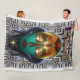 Diese Variante der Daria Cyborg Queen ersetzt den dunklen Hintergrund durch ein Kaleidoskop-Set aus meinen früheren Fraktal-Kompositionen "The Realm Of Osphilium". Um die Farbe zu waschen, benutze ich eine Justierungsebene, zusammen mit einer Sat-/Farbanpassungsschicht. Dies verleiht dem Hintergrund ein helles Papier- und ein dunkles Tintenstrahl-Tech-Aussehen, das es dem Daria-Portrait ermöglicht, so zu erscheinen, als ob es von der Seite kommt. Ich verbesserte auch bestimmte Teile des Bildes und entfernte mehrere andere Fraktal, die in der Szene überflüssig wurden. Damit der Text gut lesbar ist, habe ich dem Text einen Streicheffekt hinzugefügt, der eine kontrastfarbige Farbe zu der des Textes hat. Daria Cyborg Queen Tech besteht aus 178 Schichten, von denen 61 Fraktale zur Erstellung dieses Portrait Science Fiction Portrait verwendet wurden. 32 Fraktale wurden verwendet, um die Augen, Augenhöhlen, Augenbrauen und Wimpern zu erzeugen; 1 Fraktal für die Lippen; 6 Fraktale für die Nase und die Stützstruktur; 2 Fraktale für das Gesicht; 7 Fraktale für den Schädel; 5 Fraktale für das Kleidungsstück; 6 Fraktale für zusätzliche Akzente; 4 Kaleidoskope für den Hintergrund. Zur Erstellung der Fraktale habe ich den Fractron 9000 Fraktal Generator benutzt; für die Kaleidoskope habe ich ein Programm namens Kaleider benutzt. Alle Elemente wurden mit dem Foto Elements 7 Image Editor zusammengestellt und nachbearbeitet. Daria Cyborg Queen Tech Fleece Blanket