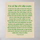 Den Mut zum Ausdruck bringen, den man braucht, um auszusteigen und zu versuchen, zu tun, versagen, aufzustehen und weiter zu fahren. "Es ist nicht der Kritiker, der zählt; nicht der Mann, der darauf hinweist, wie der starke Mann stolpert oder wo die Taten sie besser hätten machen können. Die Anerkennung gebührt dem Mann, der tatsächlich in der Arena ist, dessen Gesicht durch Staub, Schweiß und Blut beeinträchtigt wird; der tapfer strebt; der irrt, der immer wieder kurz wird, weil es keine Mühe ohne Fehler und Mangel gibt; aber der wirklich danach strebt, die Taten zu erledigen; der große Begeisterung, die großen Taten kennt; der sich in einer würdigen Sache ausgibt; der am besten weiß, am Ende den Triumph ph of high performance, und wer im schlimmsten Fall, wenn er versage, zumindest versage, während er es wagt, stark zu sein, sodass sein Platz nie bei den kalten und zaghaften Soulen sein wird, die weder Siege noch Niederlage kennen." ~Theodore Roosevelt
