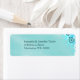© Sunny Mars Designs - Blumenblauer Hibiskus: Dark Aqua Blue Small Wedding Rücksendeadressen-Aufklebers - Stilvolle, trendige, elegante, maßgeschneiderte Hochzeitshilfsmarke mit einer schönen Illustration eines hübschen aquablauen Wirblen Hibiskus Blumendekoration vor aquamarinem oder türkisfarbenem Hintergrund.