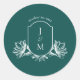 Dark Aquamarin Floral Wedding Monogram Wappen Clas Runder Aufkleber