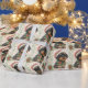 This festive wrapping paper features a charming watercolor dog wearing a Santa hat and surrounded by classic holiday greenery. Perfect for dog lovers, pet parents, and anyone who wants their Christmas gifts wrapped with warmth, joy, and personality.