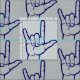 Fügen Sie Ihrem Nähprojekt eine Sign Language Touch mit diesem tollen Stoff mit mehreren Dark Blue ASL I Liebe You Hands hinzu. Röcke, Shirts, Kissen, Quilts und vieles mehr. Aus unserer Sign Language Fabric Collection.