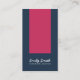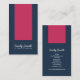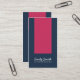 Lass den Leuten, die du im realen Leben kennst, wie du dich und deine Arbeit/dein Portfolio online findest mit dieser dunkelblauen und dunkelrosa Farbblock vertikalen Social Media Visitenkarte. Diese stilvolle Social-Media-Karte eignet sich besonders für kreative Berufe: Berater, Schriftsteller, Blogger, Innenarchitekten, Stylist, Fotografen und Freiberufler. Es ist einfach zu anpassen; Sie können den Platzhalter-Text einfach ersetzen, um Ihre eigenen Informationen hinzuzufügen. Für weitere Optionen, wie zum Beispiel den Schriftart zu ändern und seine Größe, klicken Sie auf die Schaltfläche "Anpassen". *Bitte beachten Sie, dass das Zazzle-Wasserzeichen, das in der Zoomvorschau erscheint, nicht auf dem endgültigen gedruckten Produkt © Rosewood and Citrus erscheinen wird