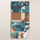 Dark Blue, Teal, Brown, and Tan Geometric Pattern Badhandtuch Set