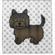 Desteis originelle Cartoon-Illustration einer niedlichen dunkelbrindelfarbenen Fell Farbe Cairn Terrier Rasse Hund. Der Hintergrund weist ein Muster grauer Hundepfoten auf.