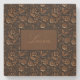 Stilvolle Stein-Untersetzer mit einem digitalen Kunstmuster aus dunkelbronisierten Blume und Blätter, erstellt mit AI-Software. Personalisieren mit Namen oder anderen Text im mittleren Quadrat