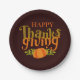 Dark Brown Happy Thanksgiving Fall Yellow Pumpkin Pappteller