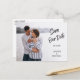 Diese moderne Postkarte von Save the Date Wedding zeigt Ihr eigenes Foto auf der Vorderseite. Das Schwarze Pinselskript befindet sich oben rechts, mit dem wichtigen Datum und den Namen unten rechts. Auf der Rückseite der Postkarte stehen mehrere Textfelder zum Anpassen zur Verfügung. Wenn eines der Felder nicht benötigt wird, einfach den Text ausfüllen. Einfach zu anpassen!