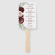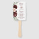 Diese Hochzeitsfans werden mit Ihren Gästen ein Hit sein, denn sie bieten Zeremonie- und Hochzeitsfeierinformationen in modernem elegantem Stil. Der dunkelbordeauxfarbene und terracotta-Blumenstrauß mit Eukalyptusgrün umrahmt den Text auf der links Seite. Die Namen der Braut und des Bräutigams sind in einem modernen, stilvollen Skript-Schriftart verbunden mit einem Ampersand. Finden Sie passende Produkte in der Kollektion, oder schreiben Sie mir durch Zazzle Chat für mehr Produkte oder verschiedene Farbwege.
