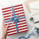 Dark Candy Apple Red and White Stripes Geschenkpapier