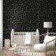 Charcoal black woodland pattern featuring pine trees and birds, for a bold, cozy nature-inspired aesthetic.