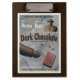 Eine Lobbykarte für den klassischen, wenn auch völlig mythischen Film "Dark Chocolate: A Killing In Candyland". Im Stil eines vor dem Zweiten Weltkrieg gedrehten Films Noir oder Whodunnit. Ein Schokoladenkorpse, ein Schokoladendetektiv und Informationen über den Film. Starring Theo Broma und Koko Bean.Aus der Non-Fraktal-Kollektion.
