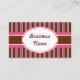 Dunkle Schokolade und Himbeerstreifen zieren diese berufliche Visitenkarte. Passen Sie diese Visitenkarte an, um Ihren Anzug zu gewährleisten. Das Design stammt aus der Originalkunst: Nutzen Sie diese stilvolle Visitenkarte für eine Tagespflege, Salon, Friseur, Gourmetschokolade, Süßwarenladen, Catering, Kosmetologe, Bed and Breakfast, Boutique, Bäckerei, Café, Kinderbetreuung, etc..