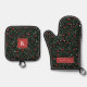 Dark Christmas Floral Monogram Name Ofenhandschuh & Topflappen-Set
