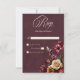 Dark Elegant Autumn Floral Burgundy Wedding RSVP Karte