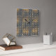 This striking abstract pattern features a structured geometric grid illuminated by soft golden highlights against a deep, moody background. Repeating diamond and square motifs form a refined lattice design, balancing symmetry and warmth. The subtle glow effect adds depth and dimension, giving the pattern a luxurious, almost metallic feel. Blending modern minimalism with classic ornamental influences, this design is perfect for sophisticated fashion pieces, elegant home décor, and contemporary surface applications.