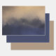 Diese Blätter haben ein Blatt mit einem modernen Kunstbild. Die anderen beiden Blätter sind in kräftigen Farben gehalten, die Farben sind dunkel, Mitternacht, Marine, Beige und Braun. Dunkelgraue Beige-Moody-Packpapier-Blätter.