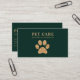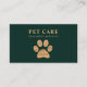 Dark Green Modern Luxury Golden Paw Pet Grooming Visitenkarte