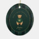 Dark Green Tartan Plaid Babys First Christmas Ceramic Ornament - with a classic teddy bear, Baby's first Christmas ornament, baby's name and year, surrounded by a border of classic dark green tartan plaid. A photo of your bundle of joy is featured on the other side in full bleed. What a wonderful keepsake this ornament would make.