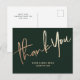 Holiday Christmas Dark Green Thank You Elegant Universal Postcard featuring modern script calligraphy text in faux gold foil