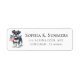A refined address label featuring a dark grey schnauzer holding an American flag, combining timeless elegance with patriotic charm, perfect for dog lovers who appreciate classic style. Perfect for 4th of July celebration invitations.