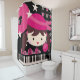 Der Duschvorhang mit der Girly Dusche in Rosa, Weiß, Grau und Schwarz ist mit einem dunkelhaarigen Mädchen in einer rosa Schädelkappe, vielen Sternen, einer Tastatur und einem Mikrofon ausgestattet!