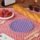 Dark Indigo und Blass Violet Checkerboard Pappteller