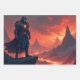 A dark knight — a mysterious fantasy warrior from the burning lands, surrounded by lava and a hellfire landscape. This armored fighter is a true skull warrior, reigning over an epic fantasy and fantasy realm. Full of evil and power, he roams a land filled with fire and volcanic mountains.
