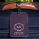 Ein mit Monogramm modernes, berufliches und minimalistisches, lila-weißes Gepäckstück, das sich perfekt für jeden Jetset eignet. Das elegante Design besteht aus zwei Monogramm-Buchstaben, die von einem klassischen Lorbeer mit Herz umschlossen sind und ihm einen raffinierten Look verleihen. Personalisieren Sie es mit Ihrem eigenen Monogramm und einer anpassbaren Namensvorlage für eine einfache Identifizierung, sodass Ihr Gepäck bei der Gepäckausgabe immer leicht identifizierbar ist. Dieses Gepäckanhänger ist das perfekte Accessoire für jeden beruflichen Reisenden. Es wurde entworfen, um eine Touch von skurriler Eleganz zu Ihrer Reise hinzuzufügen. Machen Sie mit diesem vielseitigen und trendigen Gepäckanhänger eine Aussage und reisen Sie stilvoll.