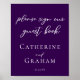 Dieses königliche lila Hochzeitsgeschenk BITTE UNTERZEICHNEN UNSER GÄSTEBUCHPoster bietet eine wunderschöne weiße Typografie auf einem tiefen Veilchen für eine Abend-Zeremonie im Winter. Minimalistische Schrift und eine fette Farbe machen Ihren Empfang Dekor Pop und heben sich von der Masse ab.