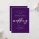 Diese königliche lila Hochzeitseinladung beinhaltet eine wunderschöne weiße Typografie auf einer soliden, violetten Karte für eine Abend-Zeremonie im Winter. Minimalistische Schrift und eine fette Farbe machen Ihre Bridal Collection Pop und heben sich von der Masse ab.
