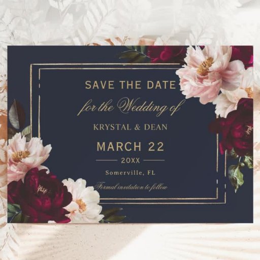 Dark Moody Burgundy Blush Navy Blue Floral Wedding Save The Date