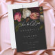Make a bold statement with this dark moody floral romantic rose fine art wedding save the date card design. Featuring lush white, burgundy and pink blooms on a deep black background, it is perfect for a sophisticated evening or winter ceremony. This dramatic aesthetic offers a luxurious, high-end feel for your special day. Created by Simply Farmhouse Press.